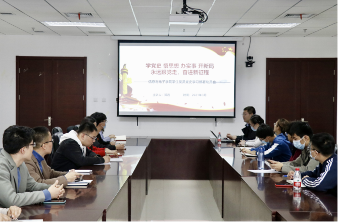 2021年3月25日上午,信息与电子学院召开返校第一课暨党史学习教育动员会,将党史学习教育与返校第一课相结合,学院党委副书记、副院长邓岩面向全体学生党支部书记以为何学、学什么、怎么学为主线展开讲述。
